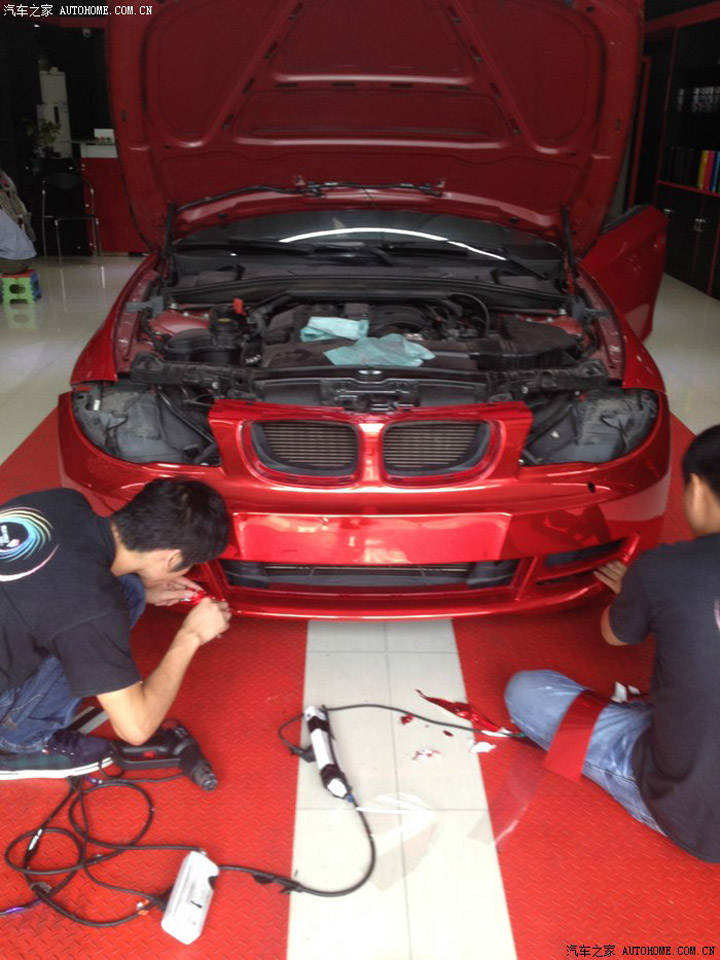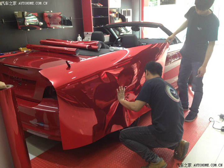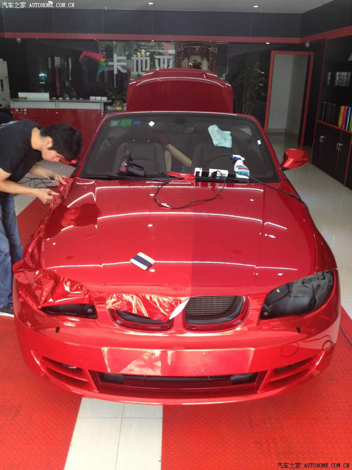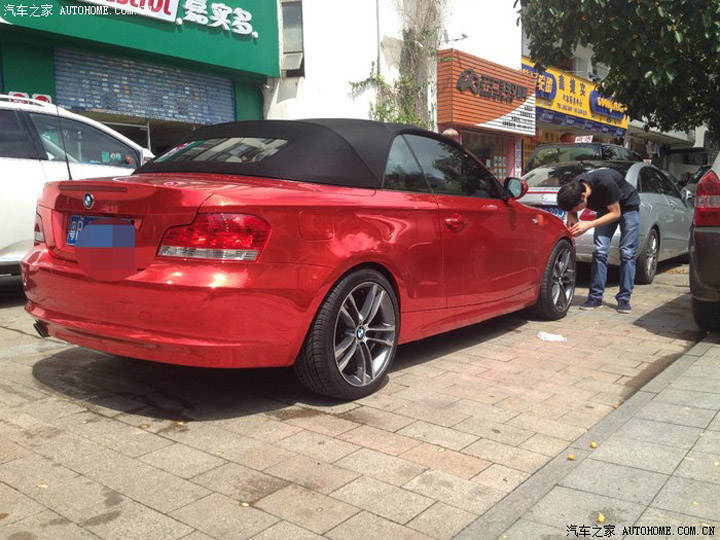 老款寶馬敞篷1系 車身紅色 再加貼電鍍紅